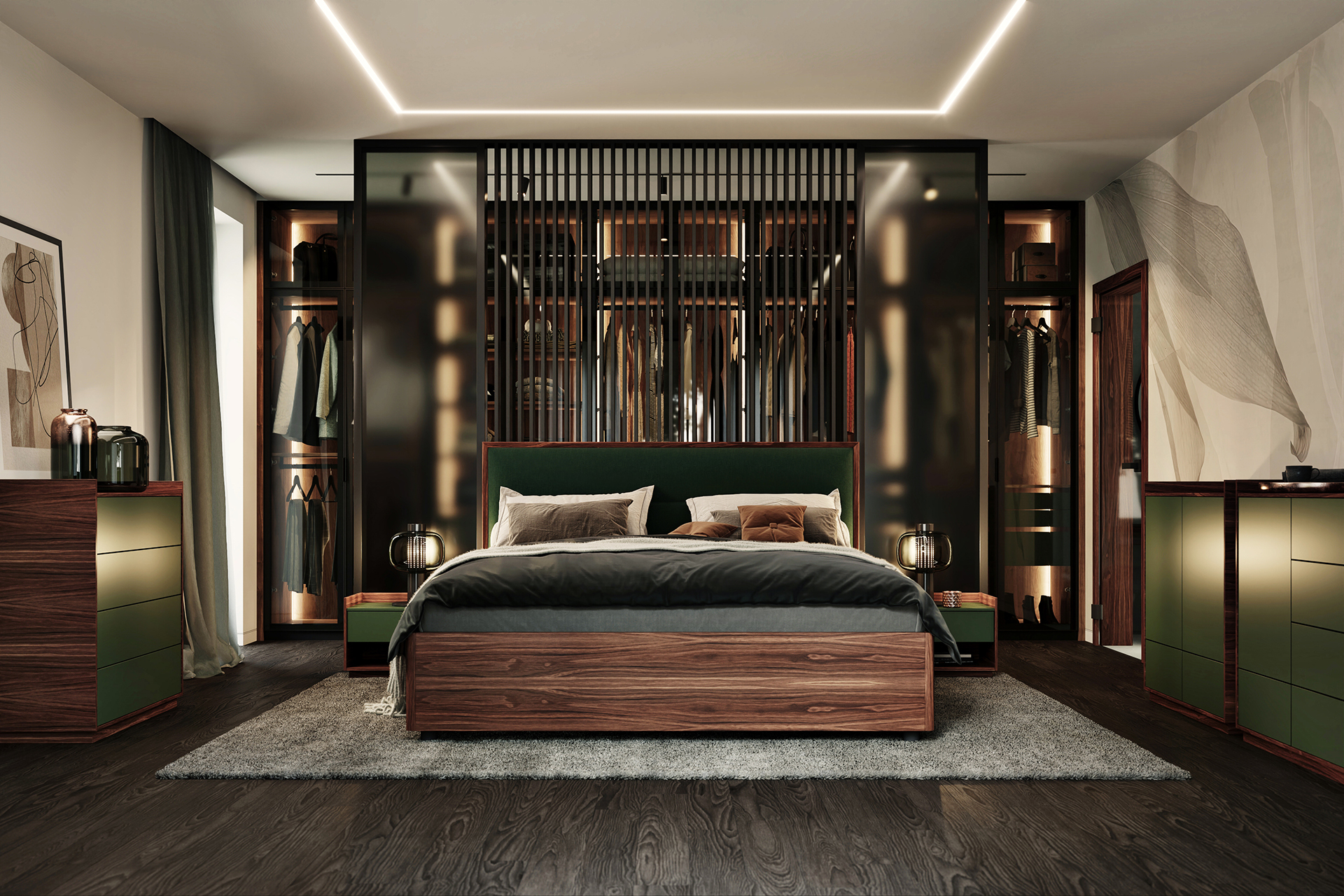 forest green mat lacquer / american walnut veneer