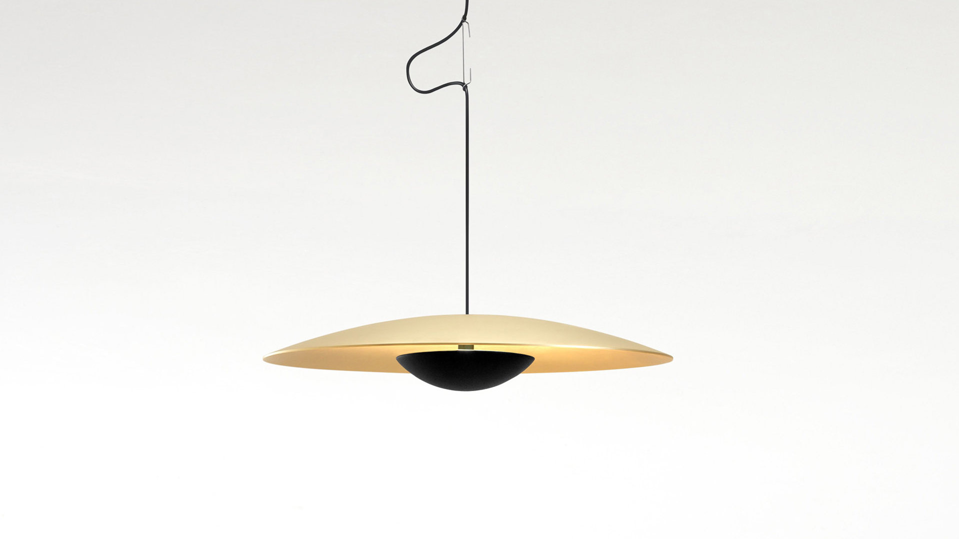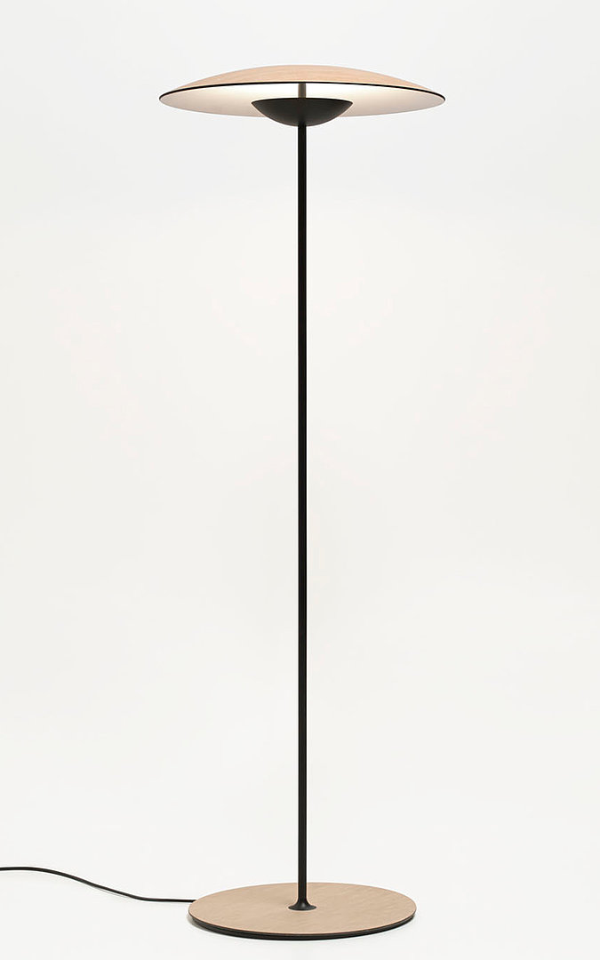 The characteristic feature of the Ginger collection is the ultra-thin shade made of a thin layer of wood veneer and paper, compressed under high pressure to form a highly smooth and hard laminate surface, just 4 mm thick. The subtle plate-shaped shade is suspended from a thin cable with a supply cord. The smallest luminaires, with a diameter of 200 mm, also offer the option of grouping 3 luminaires in an elegant composition.