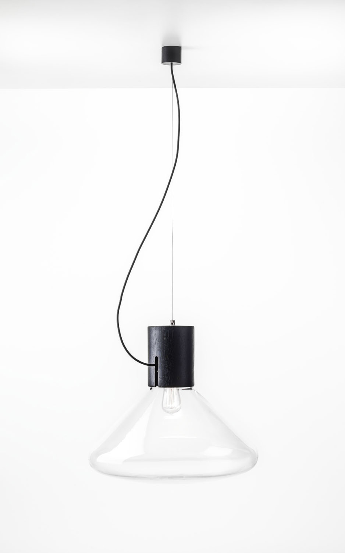 The grandeur of the design lies in the masterful combination of finely shaped glass and solid wood. The lamps with a smouldering glass shade set in a handcrafted wooden base, together with a bare filament bulb, breathe new life into any space and create a festive atmosphere.