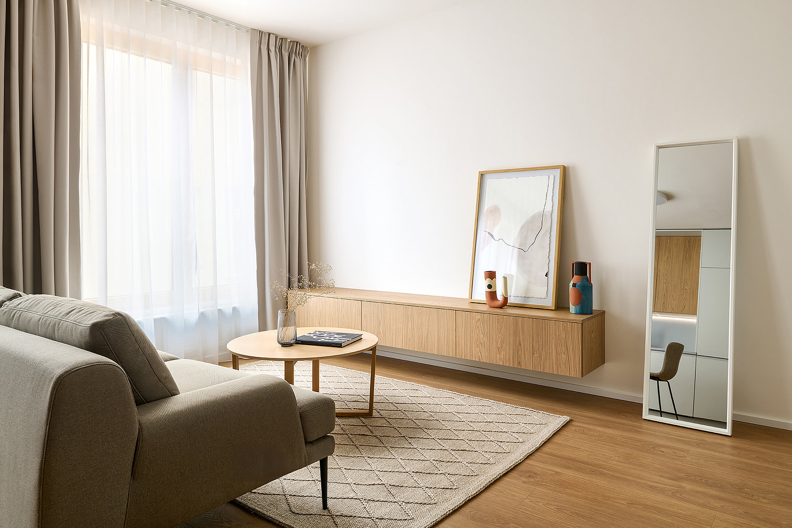 Thoughtful variability, consistent materials and balanced proportions give even a compact layout a sense of comfort, lightness and functionality for everyday living.
