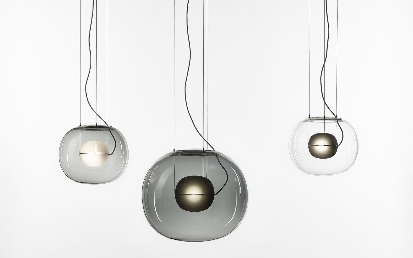 Velkoformátové světlo s matným jádrem ztělesňuje jednoduchost a vyvážené proporce. Design bubliny zavěšené uprostřed velké koule navozuje pocit levitace.